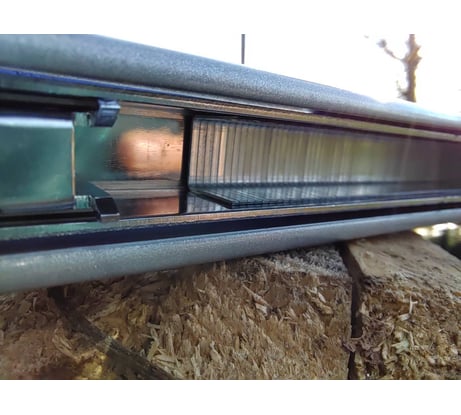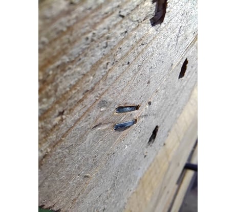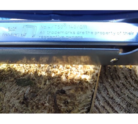 Первые две пробные скобы - на фото (верхняя - при максимальной, нижняя - при минимальной силе удара), мягкая древесина типового поддона.