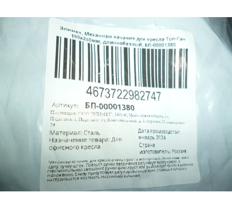 Механизм качания для кресла ЭЛИМЕТ Топ-Ган 150х250 мм, длиннобазный БП-00001380 устанавливается на офисных креслах.