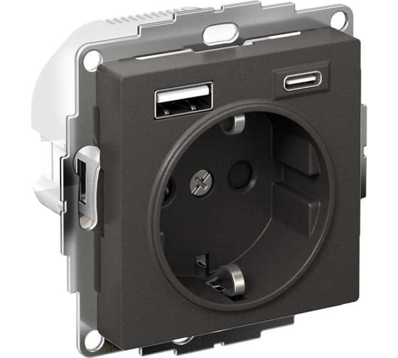 Механизм розетки 16а с 2 usb a+c Systeme Electric Atlasdesign базальт 5в/2,4а/3,0а, 2x5в/1,5а, ATN001432