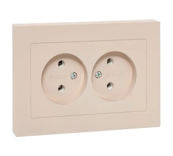 Механизм розетки двойной EKF 16А, без заземления, без шиорок, с рамкой, кремовый, Эпика UP1-SOI-200