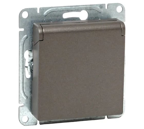 Механизм розетки EKF 16А, IP44, с заземлением, со шторками, c крышкой, мокко Эпика UP1-SOM-111-44