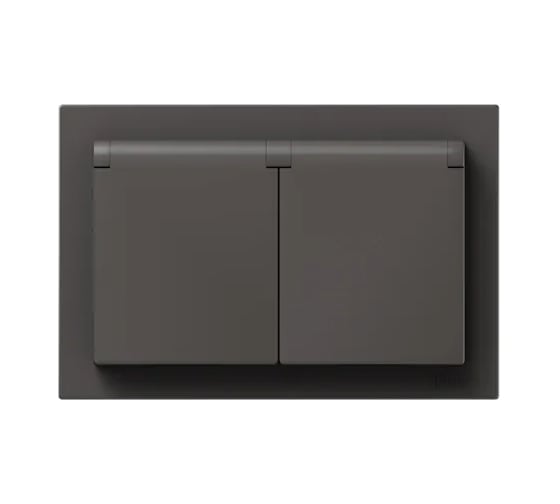 Механизм розетки EKF двойной, 16А, IP44, с заземлением, со шторками, с рамкой, с крышками, мокко Эпика UP1-SOM-211-44