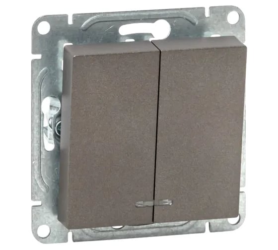 Механизм выключателя EKF двухклавишный, с подсветкой, мокко, Эпика UP1-SWM-24