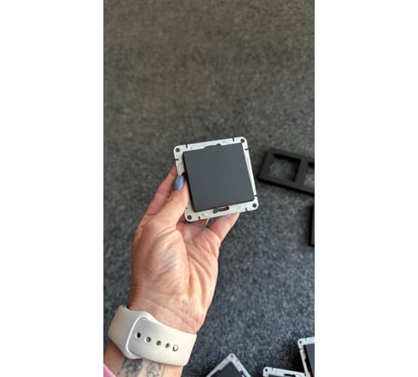 Заказали сразу рамки и выключатели одной серии. С выбором не прогадали. Я как визуал оценила внешнюю составляющую. Мне не нравится глянцевые выключатели и розетки из-за их маркости. Этот выполнен в покрытии софт-тач, что делает его и тактильно приятным и не бросающимся в глаза в интерьере. Клавиша легко переключается, ход плавный. За монтаж отвечал муж, но вроде проблем не было