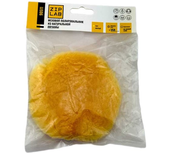 Меховой полировальник из натуральной овчины ZIPLAB 150мм, на липучке, желтый, реплика Мирка 90511