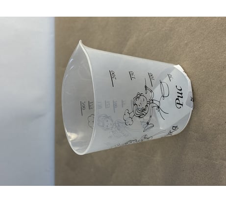 Отличный мерный стаканчик. Пластик не хрупкий, как обычно у дешевых стаканчиков, а немного упругий и твердый. То что надо.