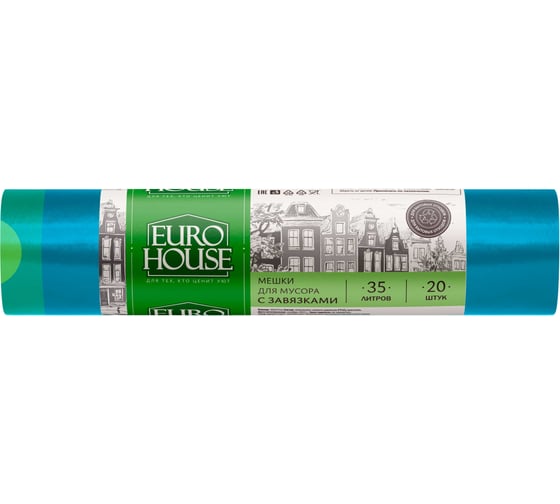 Мешки для мусора с завязками (20 шт; 35 л; 14 мкм; 50х57 см) EUROHOUSE 3625