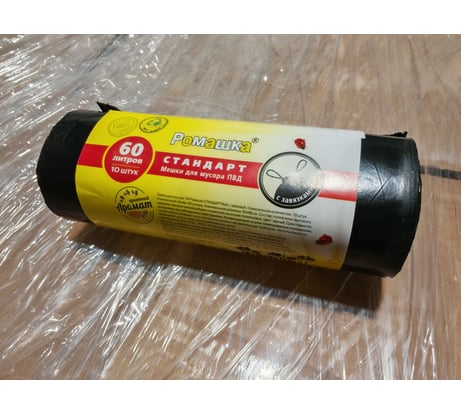 Мешки для мусора в рулоне с завязками (10 шт; 60 л; 60x68 см; 25 мкм; черные; ПВД) Ромашка ЗВС6010Ч изготовлены из полиэтилена высокого давления, черного цвета, с ароматом ванили.
