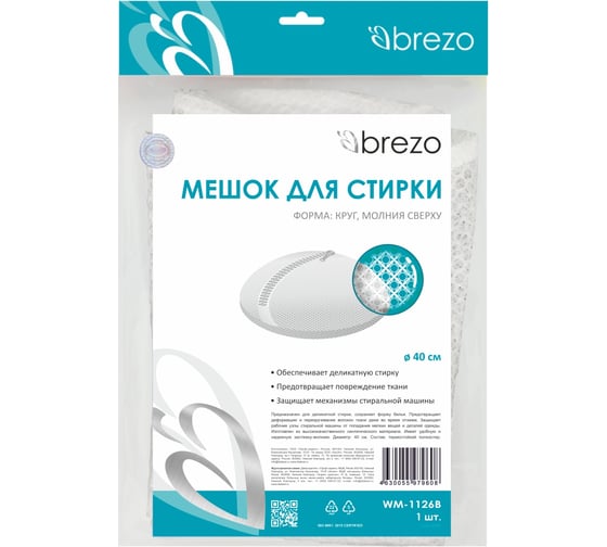 - Мешок для стирки круглый с поперечной молнией, диаметр 40 см, бренд: BREZO, арт. WM-1126B