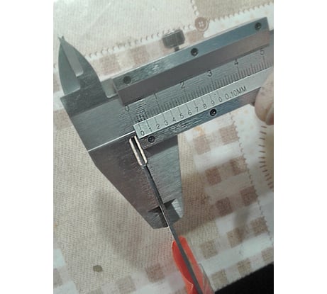 Толстая, металл хороший, деления насечные, хорошо окрашены, без разливов краски. По мм сходится с шаблонной.