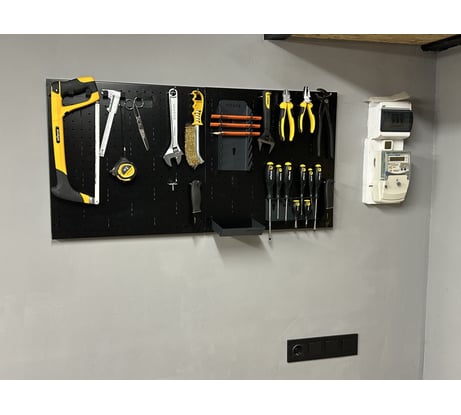 Аксессуары для панели того же производителя очень низкого качества (держатели для отверток, ключей и тп) как в плане изготовления так и в палее удобства. Отверстия под аксессуары можно было сделать более функциональными и дополнить круглим отверстием для универсальных аксессуаров (таких как крючки) (см фото)