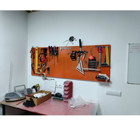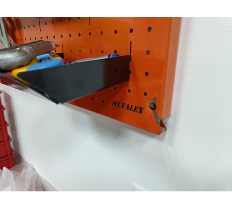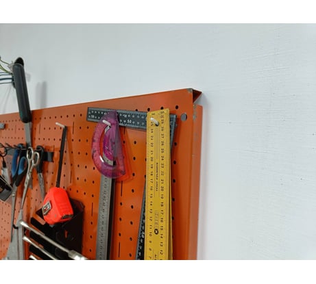 Металлическая перфопанель ООО Металекс Metalex 600x1600 оранжевая с комплектом аксессуаров PROA60160 предназначена для создания рабочей зоны и хранения различных инструментов и приспособлений в гараже, на балконе, в мастерских, на производстве. На панели легко разместить дополнительные аксессуары – ключи, лотки, держатели и т.д.