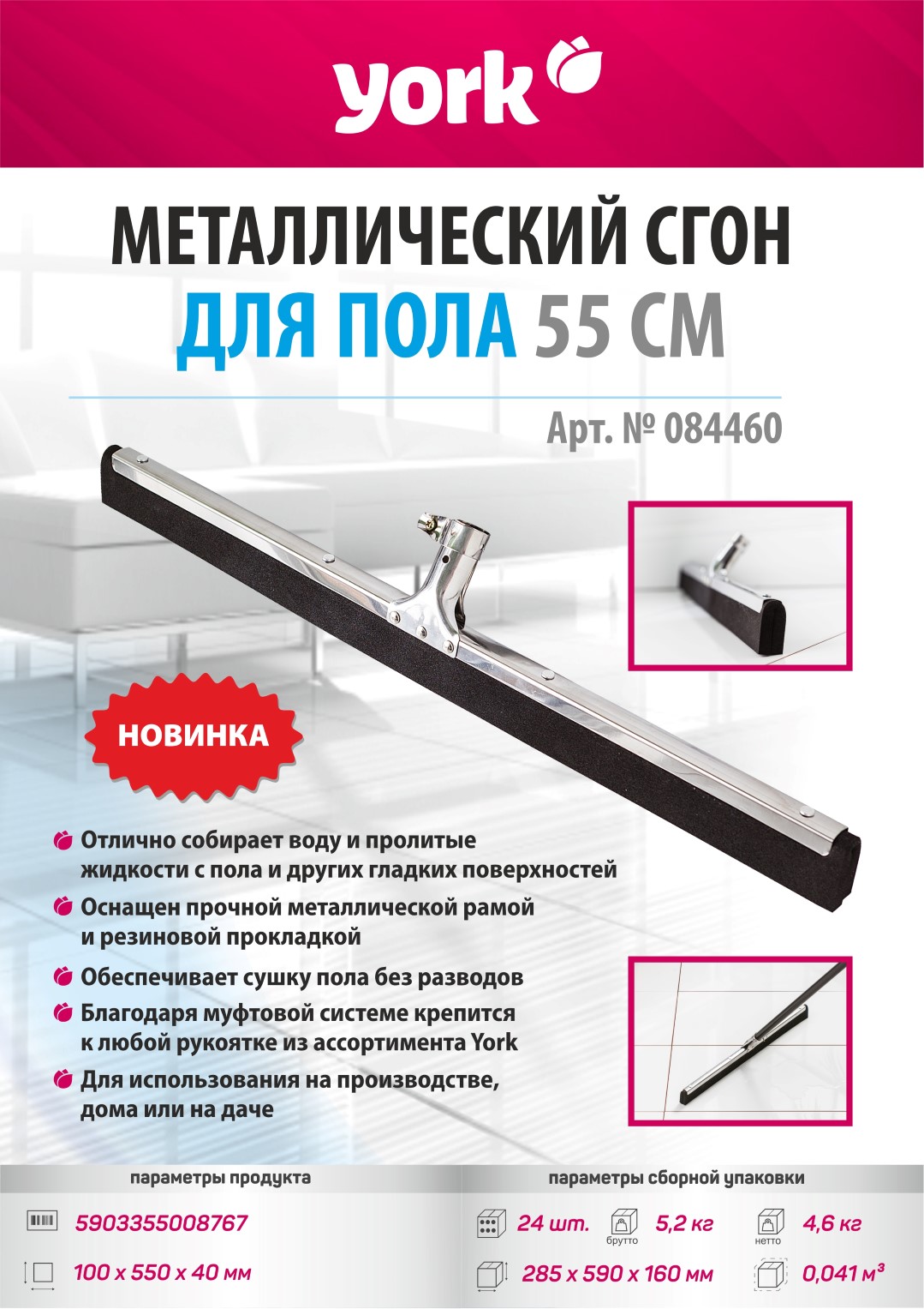 Металлическая швабра для пола YORK 55 см 084460 предназначена для уборки помещений.