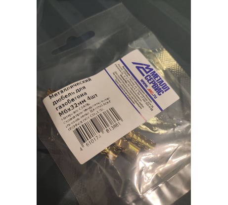 Купил эти металлические дюбели МЕТАЛЛСЕРВИС MUD 6x32 для газобетона, артикул 1227281, упаковка на 4 штуки. Они вроде подходят для крепления легких конструкций в газобетоне. Размер 6x32 мм – стандартный, вставляются без усилий. Материал металлический, не гнется. Упаковка простая, все дюбели целые. Цена не слишком высокая за четыре штуки. Не помню, чтобы они вываливались, держат нормально.