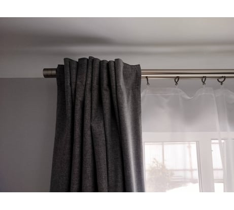 Хорошая гардина, прочный металл, выдерживающий тяжелые шторы, заглушки прочно фиксируются на штангах.