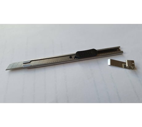 Маленький, удобный. Полной фиксации нет, если потянуть за лезвие или надавить - выходит или уюирается