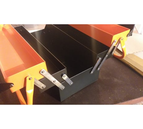 Ящик сделан добротно. Не смотря на длину 46 см. Толщина стали 0,8 мм. Порошковая покраска. Годен, считаю, и для хранения и для переноски инструмента. Вообще брендирующий Китай сильно подрос в качестве.