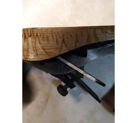 1 - Подошва рубанка "горбатая" не выведена в плоскость. Необходимо править и дошлифовывать отдельно 2- металл подошвы мягкий - будет очень высокий износ 3- язычок резака тупой - требуется доводка 4 - металл язычка сырой - тупится мгновенно.