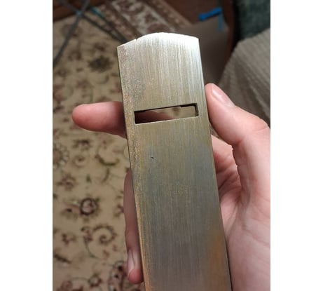 Поверхность рубанка требует доработки. И все таки глубокую царапину снять мне не хватило терпения, каждый вечер после работы шлифовал по часу полторы недели. Но сейчас рубанок хотя бы ровный. Теперь остается шлифануть нож, так как он тоже кривой и тупой и можно получать удовольствие от работы. Зубр хорошая фирма особенно для тех кто хочет из их инструмента сделать конфетку, это касается и их стаместки. Твердый трояк
