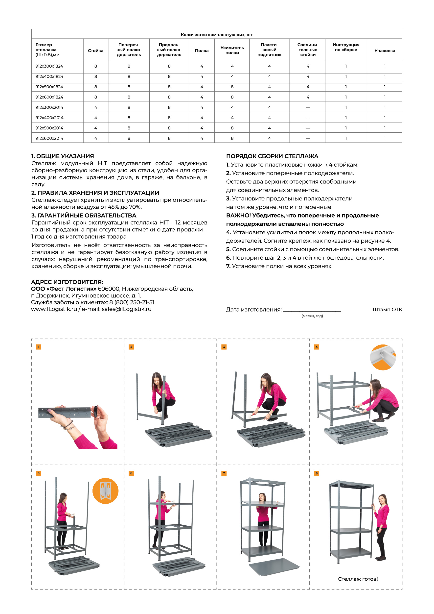- Стеллаж шириной 912мм, глубиной 300мм и высотой 1824мм подойдет для любых помещений - офис, загородный дом, гараж, балкон.