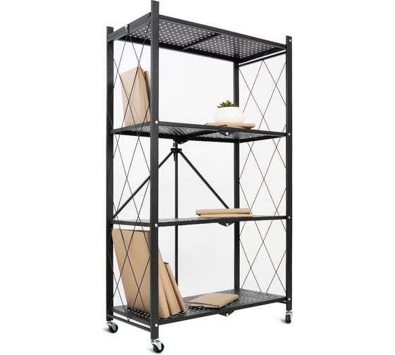 Стеллаж трансформер металлический черный Атлант-4 — это идеальное решение для хранения вещей в различных помещениях вашего дома, офиса и дачи, обеспечивающее порядок и удобство в использовании. Этот складной стеллаж на колесиках открытого типа представляет собой 4-х ярусную систему хранения. Глубина полки составляет 32 см, а высота стеллажа на колесах - 126 см.