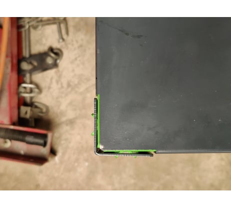 Все сделано криво-косо! Из 4 углов более менее совпал только один, см. фото. На фото все траверсы забиты маленькой кувалдочкой до упоров. Написано: при сборке не потребуется специальный инструмент. Ещё как потребуется. Если хотите чтобы столешница легла ровно, придётся использовать на выбор либо болгарку, либо сварку! Я использовал сварку, выровнял все углы и приварил. Внешний вид конечно испортился, настроение от покупки тоже, но зато быстро, чем возиться с болгаркой. Покраска столешницы плохая, уже при транспортировке куча сколов даже не на углах а на самой поверхности столешницы!