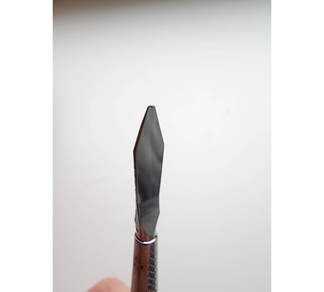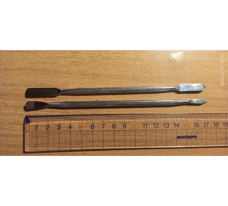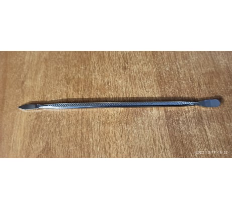 Металлическая двухсторонняя лопатка пригодится как на работе, так и в быту. С ее помощью можно вскрыть клавиатуру ноутбука или подцепить глубоко расположенную батарейку. Рабочие поверхности узкие: закругленная и заостренная.