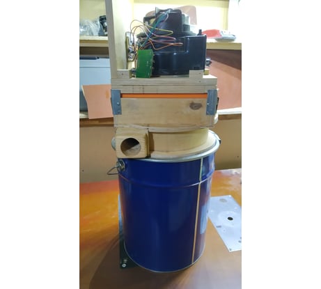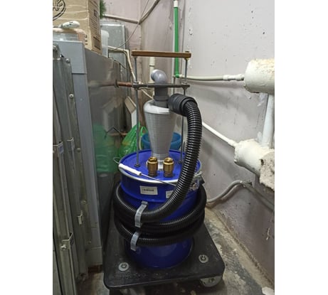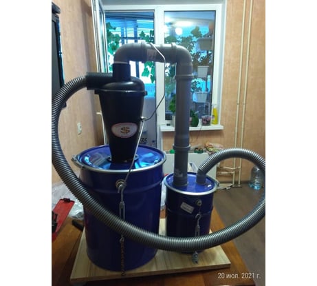Для пылесборника циклона слишком тонкий металл, быстро ржавеет и сжимается при даже незначительном вакууме. Немного потолще метал,или ребра жесткости, чем нибудь обработать антикоррозийными и было бы супер ведёрко.