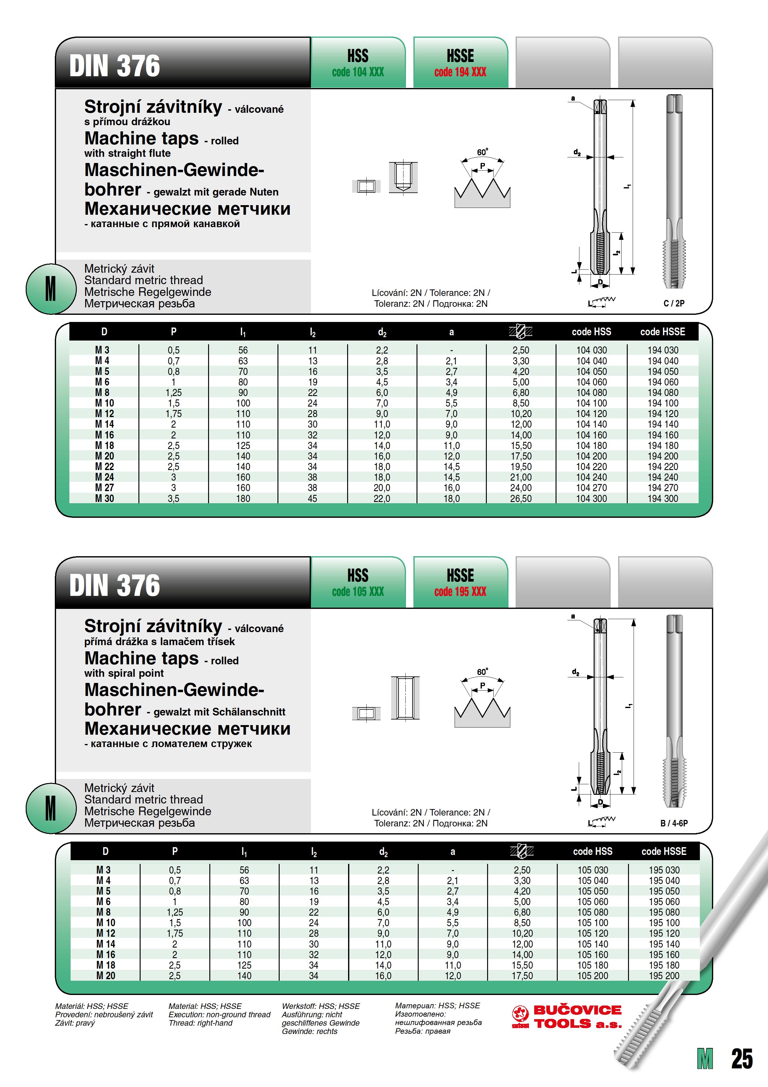 Метчик Bucovice Tools M12x1,75, машинный HSS DIN376 B/4-6P 6h(2N) 110мм Bucovice(CzTool) 105120 105120BT предназначен для создания внутренней резьбы на деталях и заготовках из различных материалов. Подходит для обработки заготовок, выполненных из стали, чугуна, алюминия, меди, бронзы, цинка, с пределом прочности до 800 MPa. Метчик изготовлен из высококачественной быстрорежущей стали HSS, которая гарантирует прочность и износостойкость.