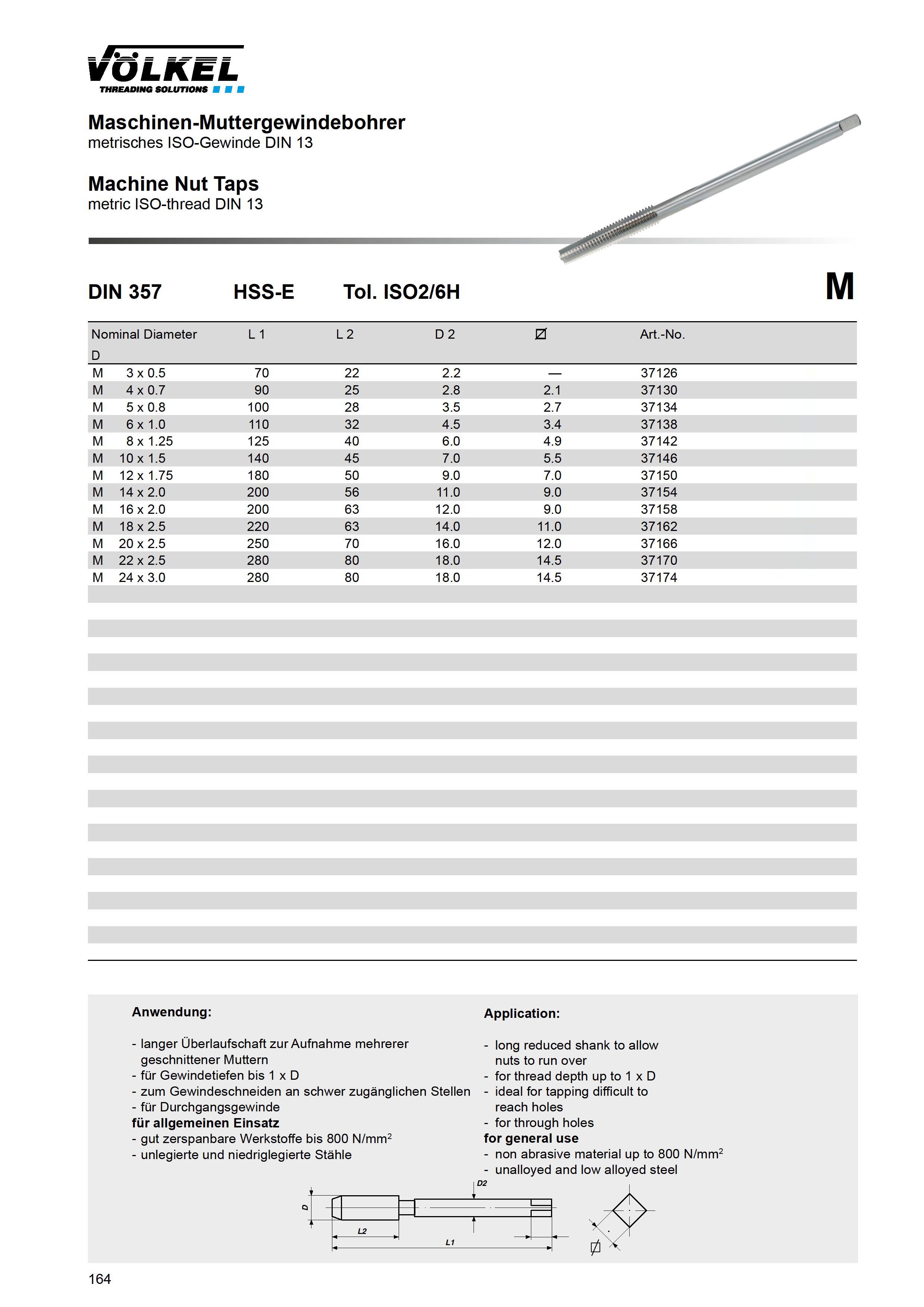 Подходит для обработки заготовок, выполненных из легированной и нержавеющей стали, чугуна, алюминия, меди, бронзы, цинка, с пределом прочностью до 800MPa. Резьба нарезается за один этап, машинным или ручным способом.