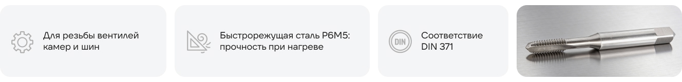Метчик для резьбы вентилей камер и шин ИНСТУЛС м/р V. 10.3x0.907 гл Р6М5 6H 10V2 00001236703 представляет собой качественный инструмент для нарезания специальной вентильной резьбы. Метчик используется автомобильной отрасли и применяется для резьбы вентилей камер и шин. Инструмент выполнен из качественной быстрорежущей стали P6M5, которая обладает высокой твердостью, сопротивлением к накаливанию и способностью долго сохранять остроту режущей кромки.