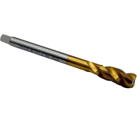 Метчик машинно-ручной TORNERI, М10х1,0, HSSE, DIN374, TiN, с винтовой канавкой для глухих отверстий, 046564