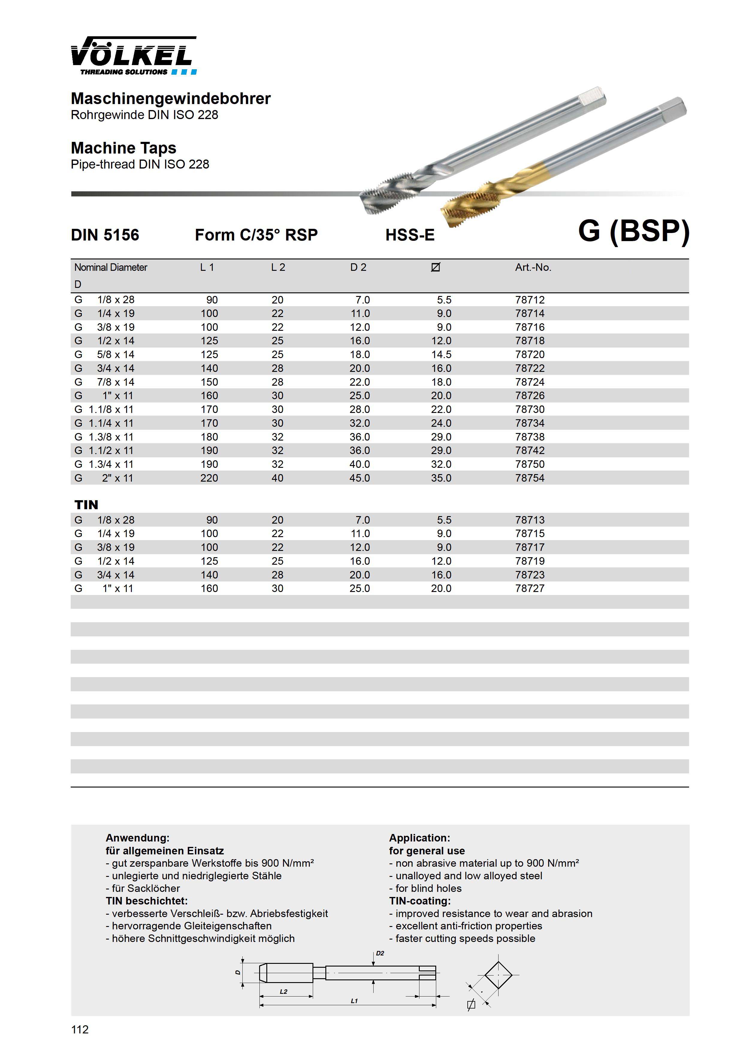 Машинный метчик VOELKEL спиральный G 1/4-19, HSSE-TiN V78715 предназначен для создания внутренней резьбы в различных материалах. Изготовлен из высококачественной быстрорежущей стали HSSE, которая гарантирует прочность и износостойкость.