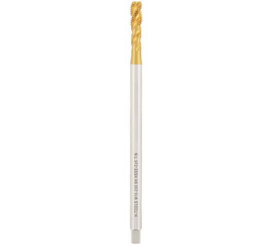 Метчик машинный спиральный удлиненный H-Tools М10, шаг 1.5 DIN371 HSSE-TiN R45 L-200мм, a=8 32185THT