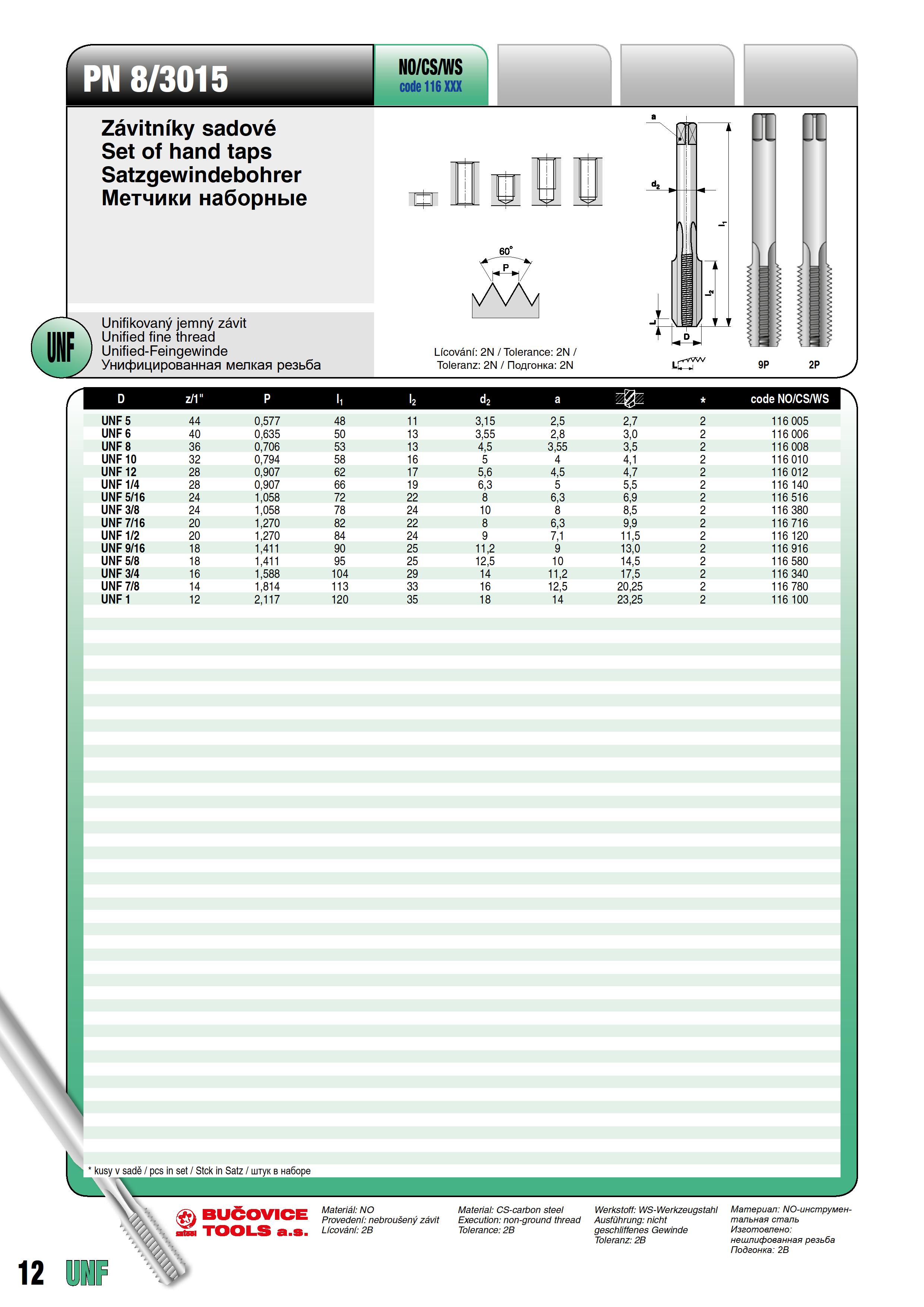 Метчик однопроходный Bucovice Tools UNF №10 -32-UNF 115CrV3 1160103