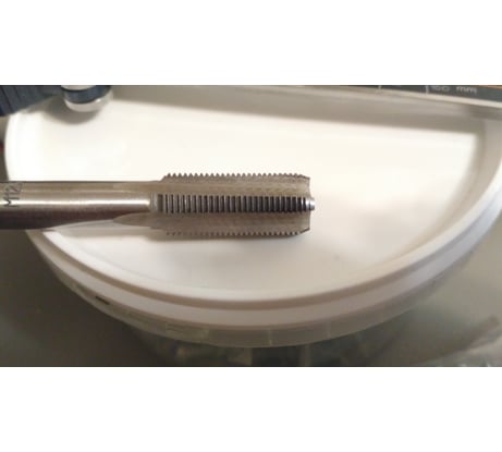 Проходил сорванную резьбу в каретках "под квадрат". В 3х отверстиях метчики с задачей справились. Новые болты шатунов теперь не срывают резьбу на поврежденных отверстиях каретки. Имейте в виду. Это не стандартная "гаечная" резьба М8. Тут шаг 1 мм ("мелкий"), а не более распространенный 1,25 ("крупный", как на болтах и гайках).