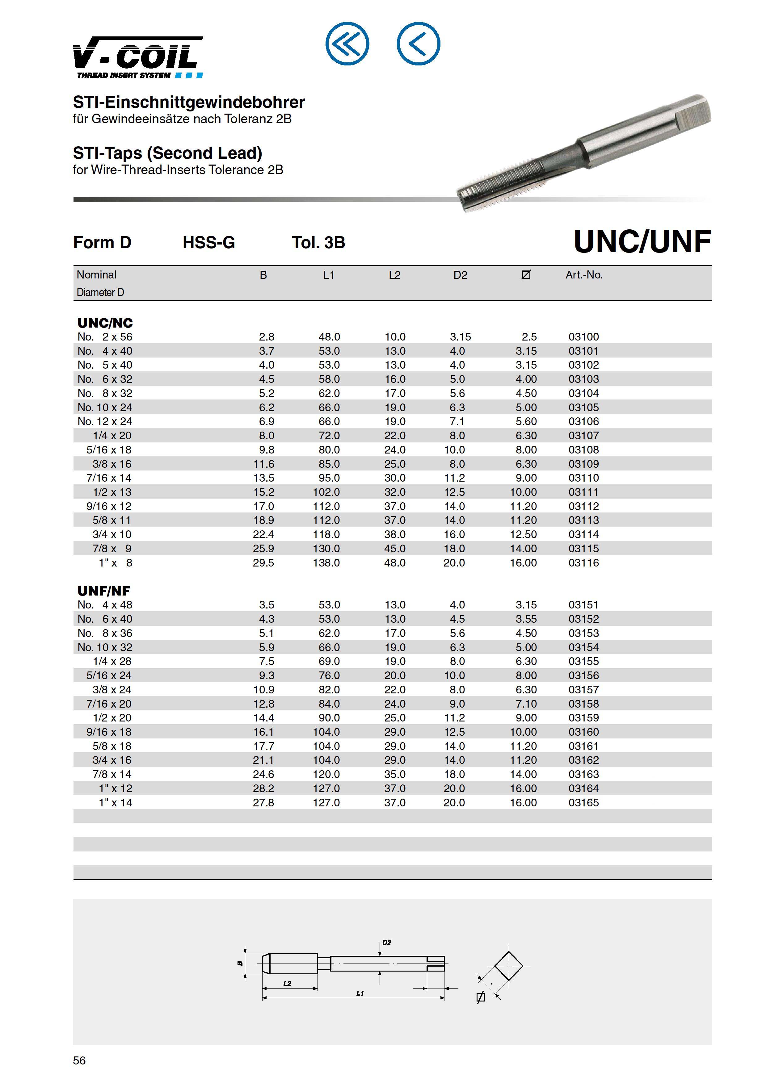 Метчик для вставки VOELKEL STI предназначен для нарезания резьбы под вставки дюймовой Американской резьбы UNC (Unified National Coarse) с углом профиля 60 градусов только с допуском ISO2 (6H).