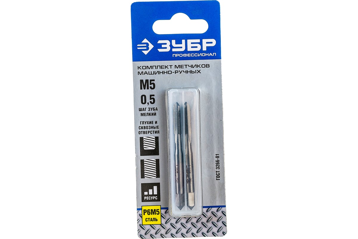 Метчики, машинно-ручные, комплектные для нарезания метрической резьбы, М5 x 0,5, 2шт Зубр ПРОФЕССИОНАЛ 4-28007-05-0.5-H2_z01