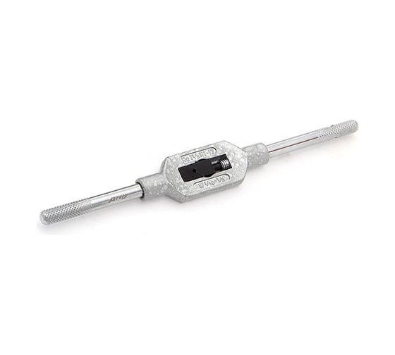 Метчикодержатель раздвижной М1-M8 Дело Техники 228008 предназначен для фиксации и вращения ручного метчика при нарезании резьбы. Рассчитан на работу с метчиками разного диаметра. Оборудован съемной рукояткой для удобства хранения.