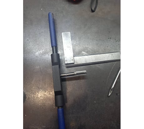 Погнулась тонкая часть подводящего винта при нарезании М10 со смазкой в отверстии правильного размера.