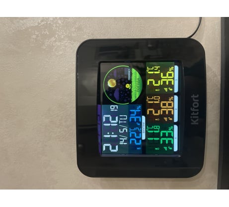 Метеостанция кт-3321, куплена в декабре. 3 датчика и само устройство метеостанции (внутри так же датчик). Информативное и удобное устройство. Датчики разместили в разных помещениях, на улице, в гараже и подсобном помещении. Показывают температуру и влажность, есть функция прогнозирования погоды, опираясь на изменение атмосферного давления. Красивый дисплей метеостанции, на батарейках работает в фоновом режиме, от сети экран светит ярко постоянно.