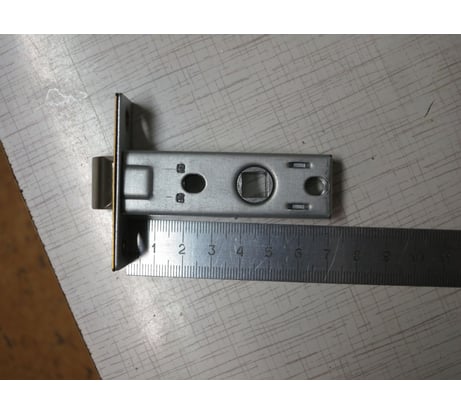 вылет защелки 10 мм, ходит четко, пружина упругая, защелка видимо силумин - не магнитится, корпус - сталь, комплектация на фото
