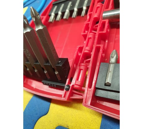 - Здравый принцип конструкции. - Можно удобно хранить и перевозить 10 длинных бит. - Низкая цена относительно конкурентов с пластиковым корпусом.