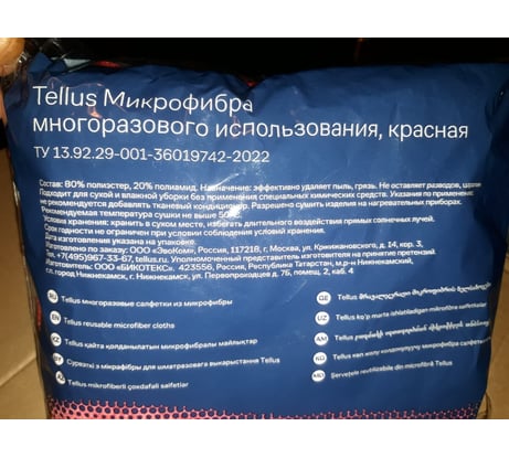 Микрофибра многоразового использования Tellus /Торк красный, 5 шт 26221 302203