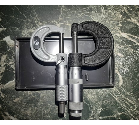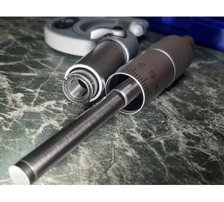 Внешних замечаний нет. 0 по делениям сходится. Есть бумажка с поверкой. Проверил на щупах: 0.1; 0.15; 0.20 и регулировочных шайбах: 2.35; 2.40; 2.50. Показания сходятся с размерами. Можно брать. Доставка 3-х штук на 10.05.2024 будущим покупателям в г. Киров мной оплачена. Куплен микрометр был за 5770 и тут же подешевел до 4 796 р.