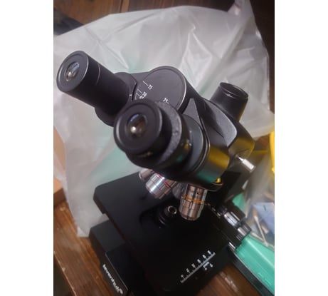 Кривая сборка, дешёвый металл и пластик, пыль и грязь линзах, слабоватое освещение, в комплект не входит камера (за такие-то деньги), слабое крепление тринокуляра, инструкция не полная.
