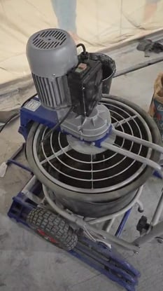 Заливали стяжку теплого пола. Мешает хорошо. Не брызгается, как бетономешалка. На стенках и дне не оставляет комков. Тележка очень выручает. Даже не представляю, если бы мешали ручным миксером и носили в ведрах. Очень удобная тележка и откидная ручка очень кстати при выгрузке смеси. Но есть нюансы: 1. Бак не фиксируется. При густой смеси начинает вращаться и приходится держать его. 2. На лопастях остаются комки смеси и приходится останавливаться в процессе и скидывать их. Но это один раз. Далее все норм. 3. Очень густую смесь не прокрутит. 4. Тележку неудобно вставлять, так как съезжает с полозьев. 5. Если вставить тележку не до упора, то не включится.