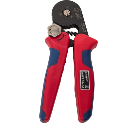 Мини-кримпер для обжима наконечников Fasen HSC9 10-6A 111108 - это электромонтажный ручной инструмент, предназначенный опресовки штыревых наконечников в диапазоне 0.25-10.0 мм2 без применения пайки или сварки. Инструмент имеет настройку давления опрессовки и принудительно размыкающуюся блокировку, которая не позволяет разойтись рукояткам до полной опрессовки, что обеспечивает высокое качество контактного соединения.