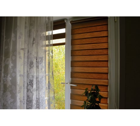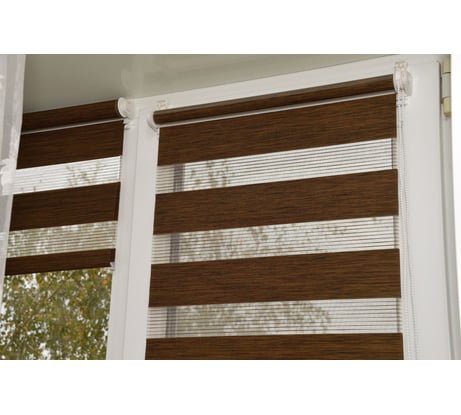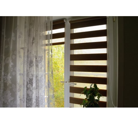 Рулонные шторы день-ночь – уникальные стильные решения для декора окна. Шторы изготовлены из материала с двумя уровнями плотности, идущей полосками.