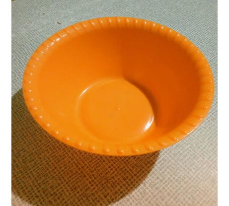 Отличная миска! Досталась жёлтая! Крепкий пластик. Горячее спокойно переносит. Удобная, емкая форма.